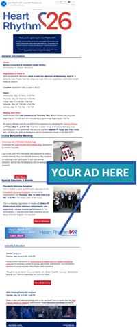 Feature your brand prominently in the Heart Rhythm 2026 global email marketing campaign targeting thousands of prospective attendees, including physicians, allied professionals, and healthcare decision-makers.
