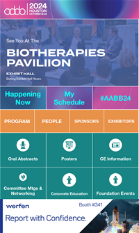 Gain access and introduce yourself to AABB’s 76+ years-strong, industry-leading community at the 2026 AABB Annual Meeting by participating in the Biotherapies Pavilion. The Biotherapies Pavilion is a highly sought after destination in the Annual Meeting Exhibit Hall that will feature custom biotherapies-focused content and speakers, and opportunities to network with decision makers in biotherapies.